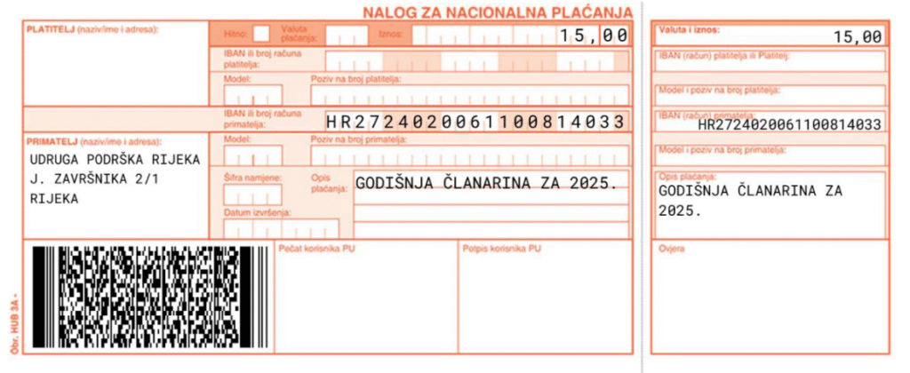 Uplatu je potrebno izvršiti na način prikazan na primjeru uplatnice ili skeniranjem koda.